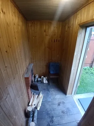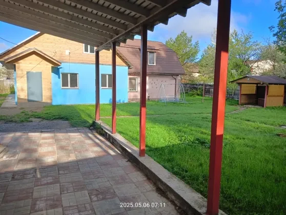 На участке - капитальный 1,5 этажный гараж, баня, кладовка для хранения, огромный навес (камаз влезет).