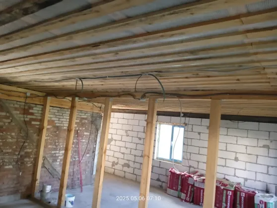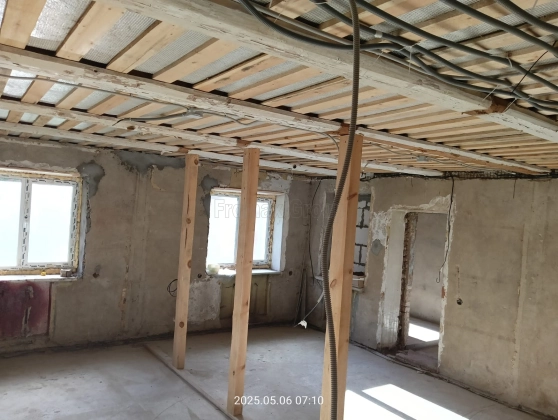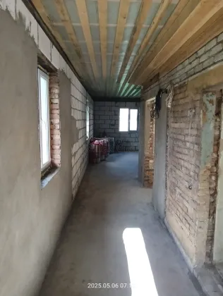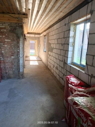 2 дом - одноэтажный, (14 на 8,5 по внутренней стороне стен) кв.м, кирпич+газоблоки, без отделки.
