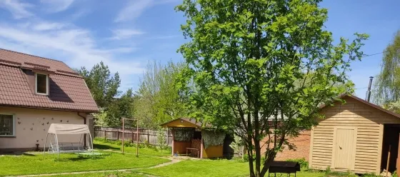 На участке - капитальный 1,5 этажный гараж, баня, кладовка для хранения, огромный навес (камаз влезет).