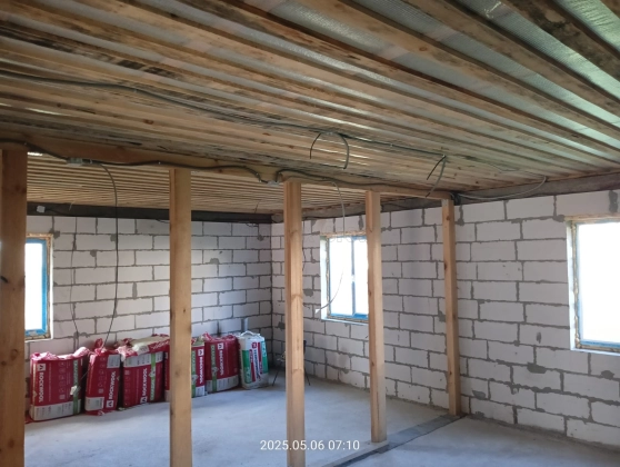 2 дом - одноэтажный, (14 на 8,5 по внутренней стороне стен) кв.м, кирпич+газоблоки, без отделки.