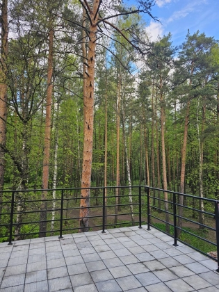 Шикарная терраса открытого типа с видом на лес, может служить вам прекрасным местом отдыха в жаркие летние дни и после долго рабочего дня. Также можно сделать прекрасный летний/зимний сад, со звуками хвойного леса и пением птиц. Терраса имеет ограждение по всему периметру. Напольное покрытие – плитка.